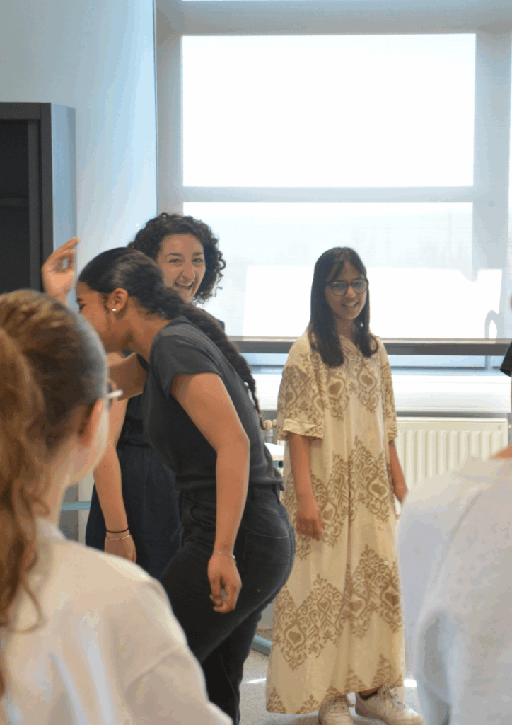 À l’aide d’exercices ludiques, le théâtre d’objets devient un terrain d’expression pour les résident·es où les langues se délient, et le plaisir est grand !